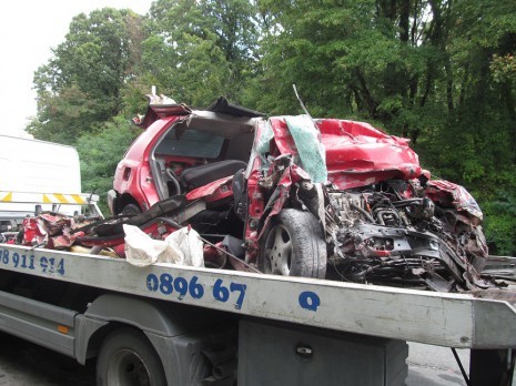 Червеният "Голф", в който са пътували в момента все още е под тира. На мястото пристигат техни роднини, които плачат неудържимо.