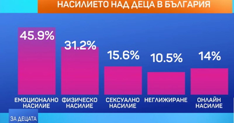 Според данните на международната организация, почти всяко четвърто дете е преживяло насилие в училище или в своята общност. Обезпокоителен е фактът, че домът, който би трябвало да е най-сигурното място, се оказва рискова среда за една трета от децата в България, които са жертви на домашно насилие.