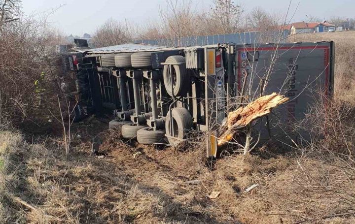 Разградския екип на тежкотоварна пътна помощ е вече над 24 часа на мястото и работят по изваждането на обърналия се камион.