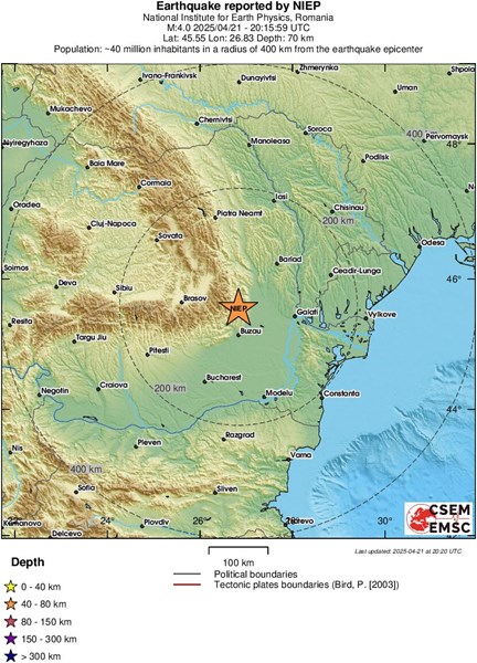 Силно земетресение с магнитуд 4.0 по Рихтер беше регистрирано в Румъния тази вечер, в 23:15 часа местно време, съобщи Румънският национален институт за изследване и развитие на земната физика (INCDFP).