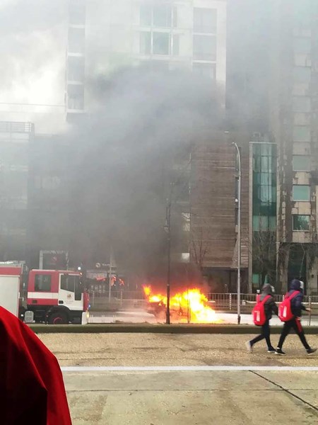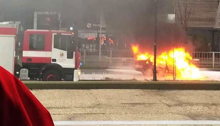 На мястото преди малко се чу взрив, съобщи "Петел". На мясотото вече има екип на пожарната, който гаси колата.