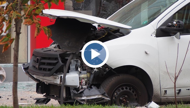 Части от колата са се разхвърчали на пешеходната пътека, има нанесени щети и на околните сгради.