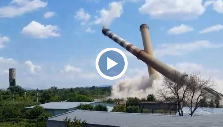 Взривиха двата комина в площадката на бившия ТЕЦ Казанлък