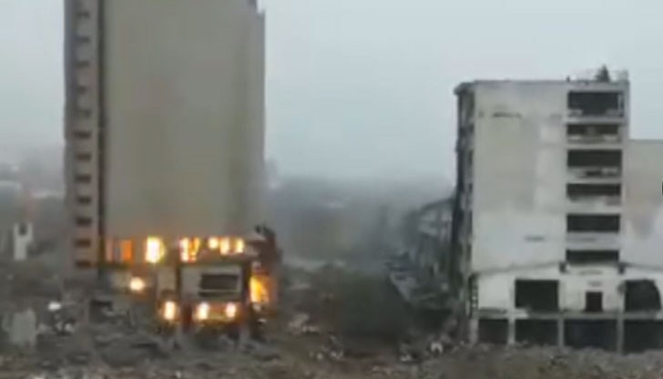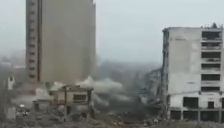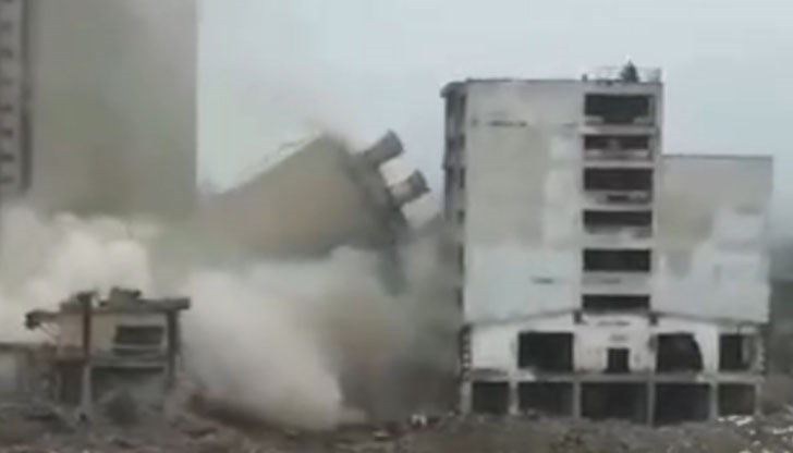 Това е второто съоръжение на бившия комбинат, което се събаря с контролиран взрив, 20 години, след като предприятието фалира заради дългове към доставчици.