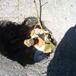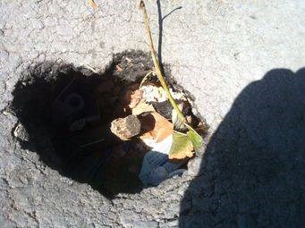Дупката е широка около 30 см и опасното място е обозначено с клони, за да се забелязва.