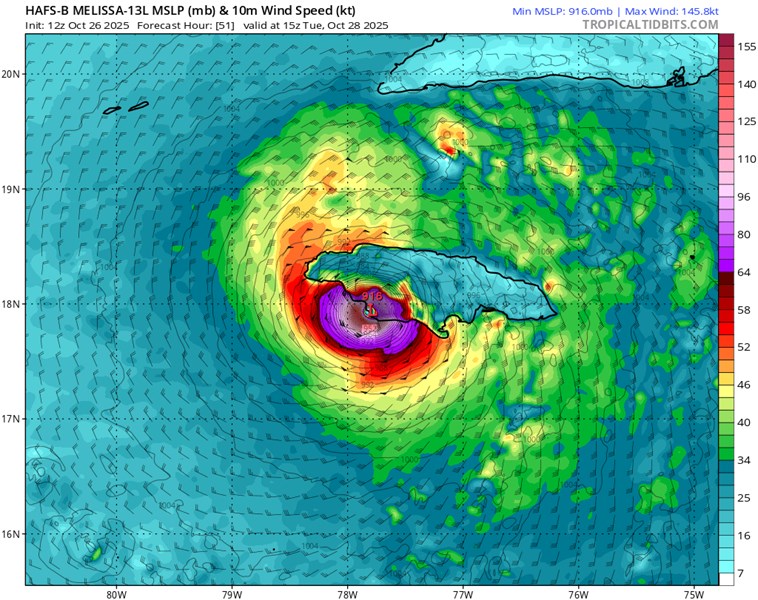 Урагана "Мелиса" се превърна в стихия от категория 5 – най-високата по скалата на Сафир - Симпсън, съобщи Националният център за урагани на САЩ. Максималните постоянни ветрове около центъра на урагана достигнаха 260 км/ч, а поривите – до 280 км/ч, според CNN и NPR.
