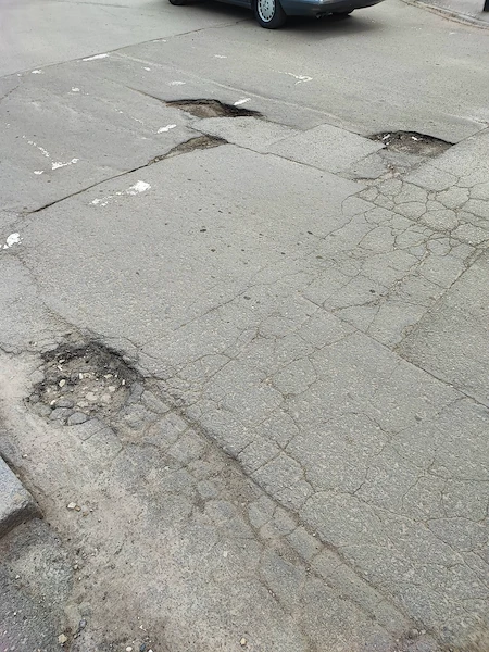 Жителите на Русе алармират за поредния сериозен инфраструктурен проблем в града. Улица "Свети Георги", която осъществява ключова връзка между булевард "Борисова" и улиците "Видин" и "Николаевска", е в критично състояние, осеяна с дълбоки дупки и сериозно пропадане на пътната настилка.