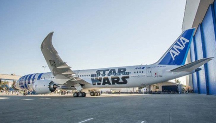Уникалната премяна на Boeing 787-9 е вдъхновена от емблематичното малко дроидче R2-D2, което във филмовата поредица служи на Анакин и Люк Скайуокър, а сега ще обслужва полети между Токио и Ванкувър.