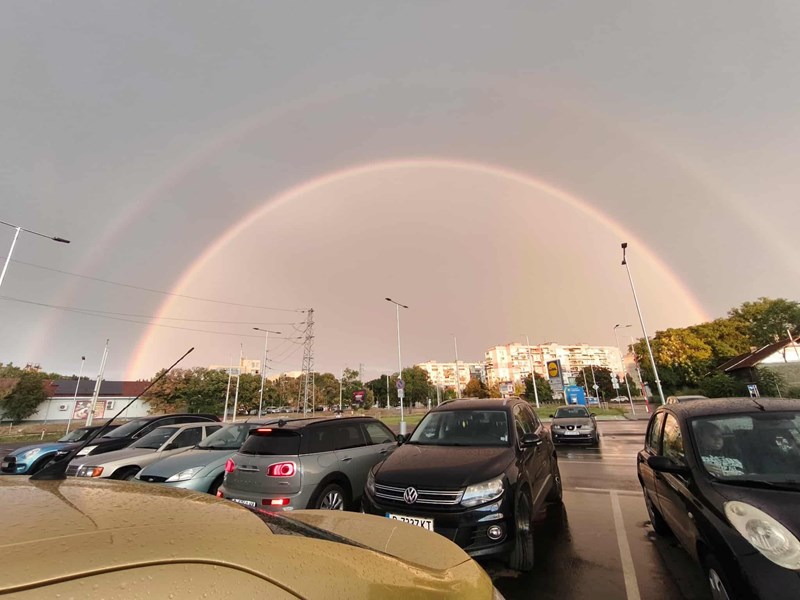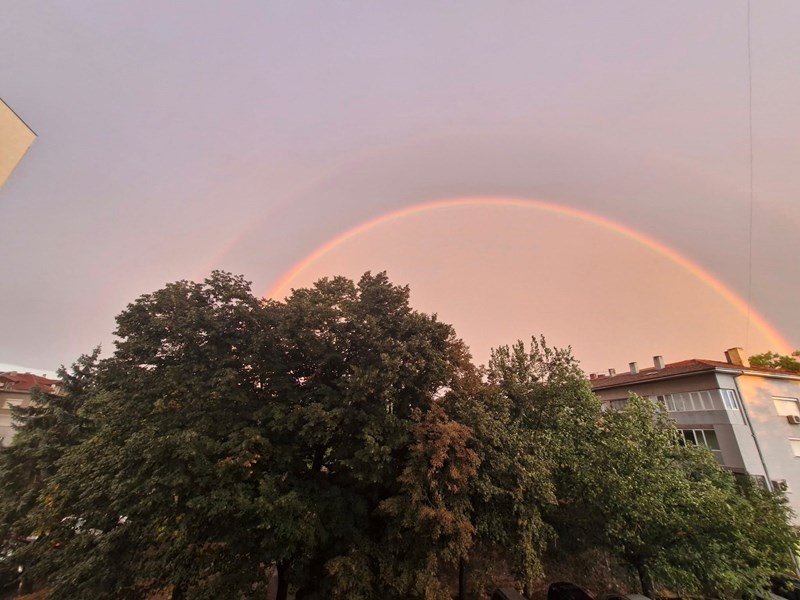 Красива дъга украси небосклона над Русе след следобедния дъжд в последния ден на август. Десетки русенци споделиха снимки на природното явление в социалните мрежи, изразявайки възхищението си от пъстрата феерия, с която изпращаме летния месец.