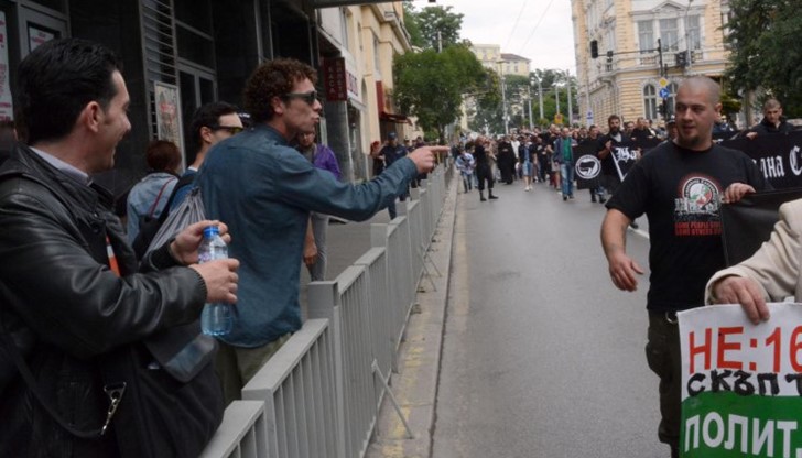 В момента, в който двете групи се засякоха, а противниците на хомосексуалната свобода крещяха обидни реплики срещу гейовете, Явор Бахаров гневно избухна.
