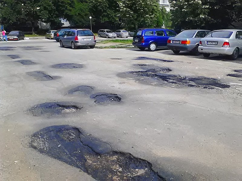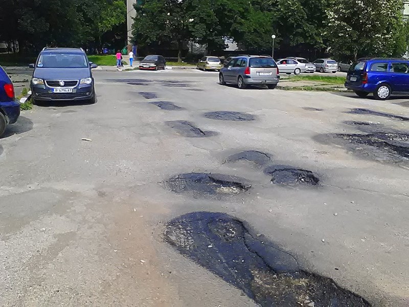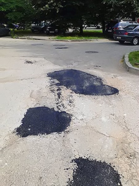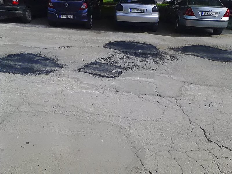 Това е пресечка на ул. Братислава към бл. Енергетик в квартал ''Изток''. Старият асфалт не е изрязан, а само е напръскано със смола върху прахта! Тази технология издържа няколко месеца!