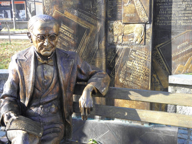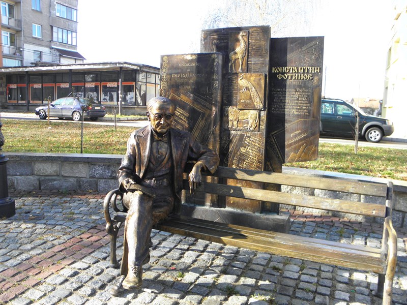 Това са снимки от едно сравнително неголямо градче. Живеещите там паметливи родолюбци са направили скулптурна композиция на виден свой съгражданин - Константин Фотинов.