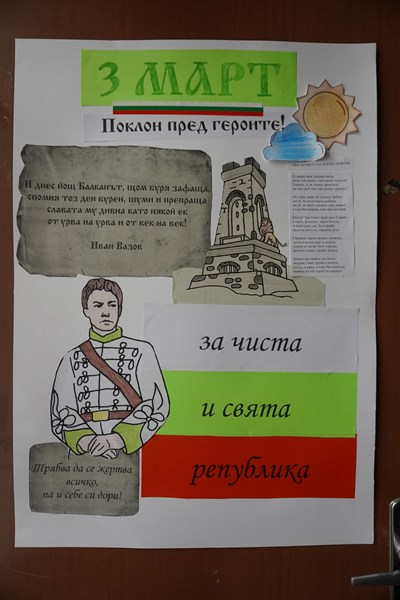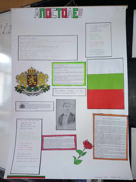 Във всяка класна стая на училището гимназистите поставиха на видно място табло, тяхно дело за значимостта на националния герой като символ на България.