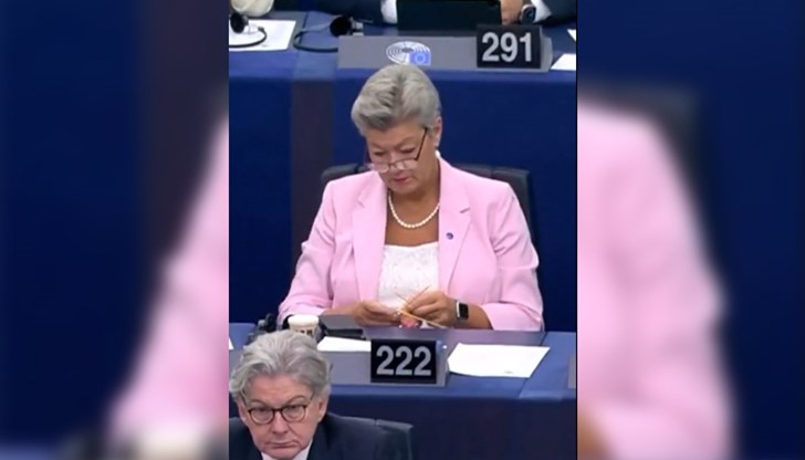 Куриозна снимка на европейския комисар по вътрешните работи Илва Йохансон обиколи медии и социални мрежи. По време на годишната реч на председателката на ЕК Урсула фон дер Лайен "За състоянието на Съюза", високопоставената служителка на Еврокомисията необезпокоявано работи, но.. с домашно плетиво.