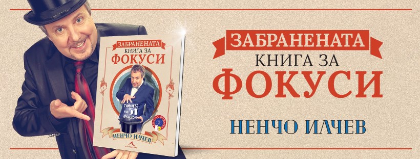 На 3 декември излиза от печат луксозното цветно издание „Забранената книга за фокуси“ на артиста и фокусника Ненчо Илчев. Всеки фокус е магия, малко чудо, което озарява публиката. А Ненчо споделя с читателите си, малки и големи, тайните на 51 фокуса. Всеки от фокусите е представен стъпка по стъпка, за да бъде лесно разбрана техниката за изпълнение, и трикът, който трябва да се пази от наблюдателността на зрителя. Към книгата са включени и реквизити за направата на три от описаните фокуси – със сигурност ще се изкушите да пробвате таланта си. Така лесно ще усвоите класически фокуси като „Невидимата монета“, „Изчезващата вода“, фокуси въженца, топчета, зарчета, бобчета и кибритени кутийки. Определено картите за игра са един от най-любимите реквизити на илюзионистите, така че и в книгата те са основен инструмент в немалко трикове. Има и някои по-необичайни фокуси – например с банан, който е нарязан отвътре, а с непокътната обелка отвън; балон, който е прободен, но не се пука; срязано въженце, което пак става едно цяло. И още, и още: фокус с червило, с компас, как 10 лева се превръщат в 20 лв. (това всички искаме да го владеем!), магията на изчезващата кърпичка, на променящия цвета си напръстник, на изчезващата химикалка и летящия молив.