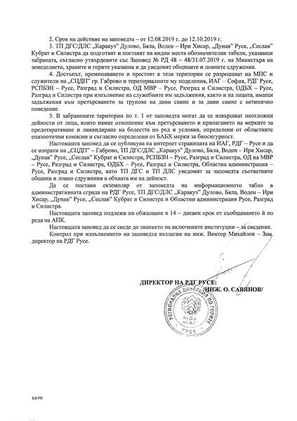 Срокът на действие на заповедта е от днес до 12.10.2019 година.
