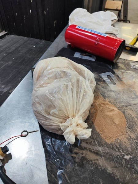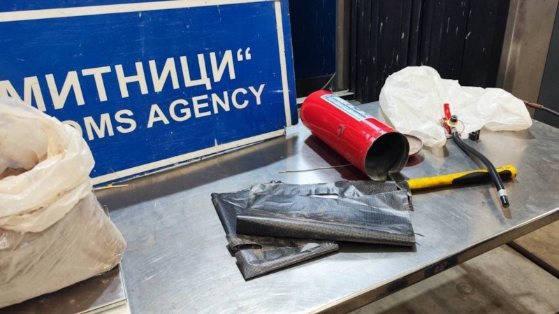 Пожарогасителят е бил отворен и във вътрешността му е установено кафяво прахообразно вещество, опаковано в два плика. Полевият тест за наркотици е реагирал положително за хероин.
