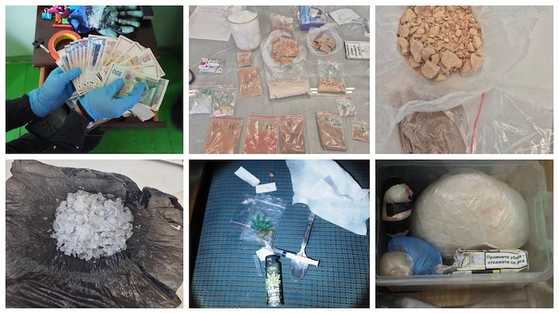 При проведените претърсвания на няколко адреса в двата града са намерени и иззети над 380 грама фентанил, над 400 грама метамфетамин, марихуана, прахообразни и кристалообразни вещества, както и таблетки с неустановен състав. Освен наркотиците, полицията е иззела парични средства в размер над 15 000 лева, електронни везни, спринцовки с прозрачна течност и мобилни телефони, използвани за престъпната дейност.