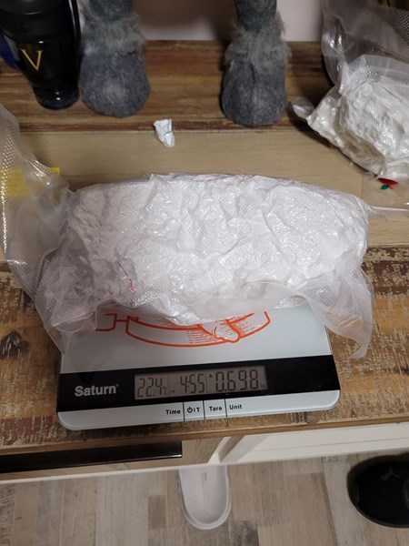 Разследването продължило с претърсване на апартамента, обитаван от дилъра. Там са намерени и иззети близо 340 вакуумирани пликчета с марихуана, множество пакетчета с кокаин, халюциногенни гъби, електронна везна и машина за вакуумиране.