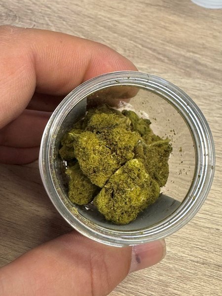 При последвалите действия е установен 53-годишен мъж, у когото са открити цилиндрични кутии от поливинилхлорид, съдържащи суха зелена тревна маса с общо тегло около 15 грама. При разпита той е признал, че веществото е канабис, съдържащ активни съставки хексахидроканабинол и тетрахидроканабинол.