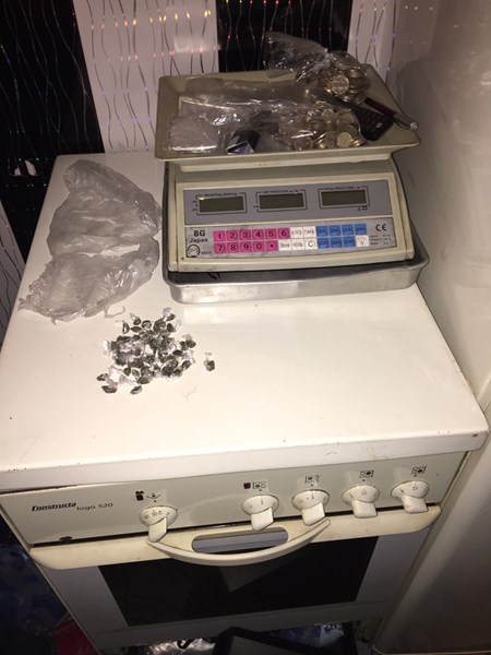 На адрес на ул. „Джебел“ със 166 разфасовки хероин били заловени 21-годишен младеж и двама 16-годишни тийнейджъри. Експертна справка показала, че общото количество на иззетото от тях високорисково наркотично вещество е близо 12 грама. Междувременно в къща на ул. „Сокол“ били установени 28-годишна жена и мъже на 52 и 38 години. И тримата са с регистрации в полицията и присъди за престъпления, свързани с наркотици.