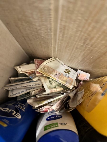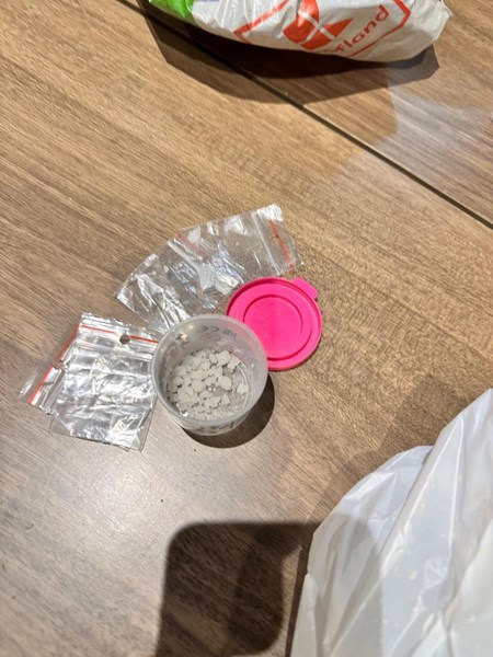 При претърсване на частен дом на улица '"Опълченска" са намерени и иззети 110 грама пико, готови дози тип джъмпер, везни и аксесоари за разпределяне на синтетичната дрога, както и голям брой мобилни телефони, съобщиха от полицията. В банята са били открити около 2100 лева в брой.