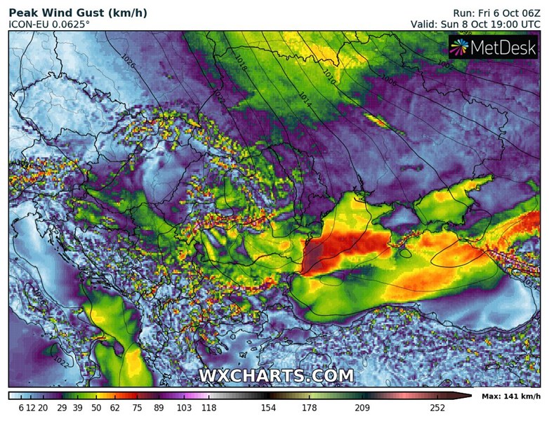 Към края на тази седмица очакваме силни пориви на вятъра, като на места из Дунавската равнина и по Северното Черноморие ще достигнат пориви до 70-80 км. в час. Ураганни стойности се очакват по високите върхове с надморска височина от над 2000 метра, като там дори ще прехвърчат и снежинки. Причината за силния вятър е нахлуващ добре изразен студен атмосферен фронт, съобщи Meteo Balkans.