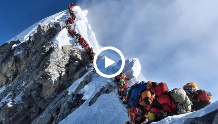 Кадрите на подредените на опашка алпинисти в района на връх Еверест обиколиха света и накараха мнозина да помислят, че това е монтаж. Снимката обаче е реална, а заради задръстването има загинали.