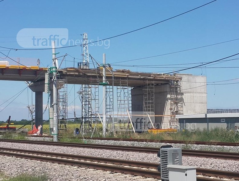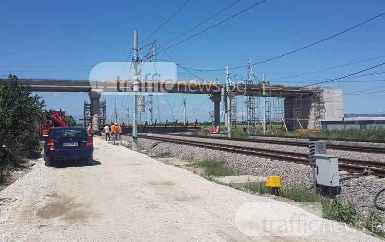Тежката конзола е блокирала и жп линията. Инцидентът е станал на метри от гара "Тодор Каблешков". Блокирани са и трите линии, а движението на влакове между Пловдив и София е преустановено. Ще се наложи чакането на техника, която да вдигне падналата конзола.