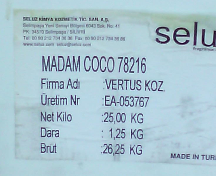 Върху всяка от тубите има надпис, съдържащ наименованието на парфюма. Тъй като част от тях са идентични или наподобяват имената на известни търговски марки - „Coco" и „Allure" на "Chanel", "Hugo" на „Hugo Boss" и др., ароматите са задържани, поради съмнение, че нарушават права върху интелектуална собственост.