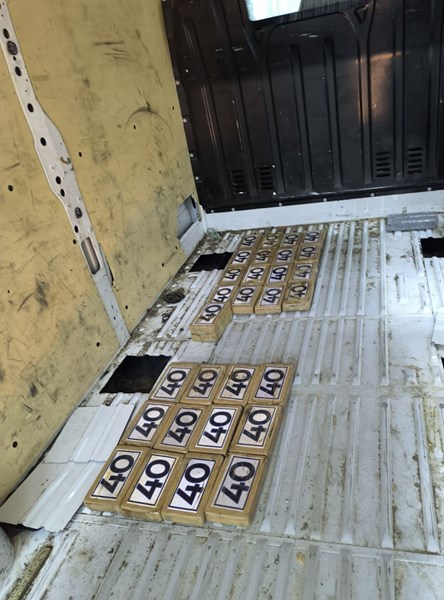 При щателния контрол е използвана мобилна рентгенова система, последвана от физическа проверка на товарния автомобил. В специално изграден тайник в пода на превозното средство са открити 30 пакета, облицовани с черно тиксо. Общото тегло на иззетите пакети възлиза на 34 207 грама.