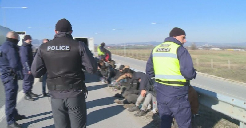 Полицията залови бус с 37 мигранти на АМ "Струма". Те казват, че са от Афганистан.