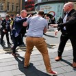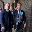 Кадрите, завъртели се в интернет, показват Фараж видимо изнервен, с изцапан костюм и както изглежда каращ се на своите охранители, че не са предотвратили инцидента.