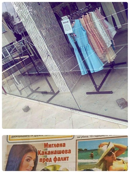 Дизайнерката сподели в профилите си в социалните мрежи снимка, на която се вижда, че отново са счупили витрината на бутика й в София, този път с паве.