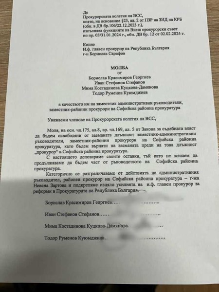 Четиримата се оттеглят от ръководните постове и декларират, че се разграничават от действията на районния прокурор Невена Зартова