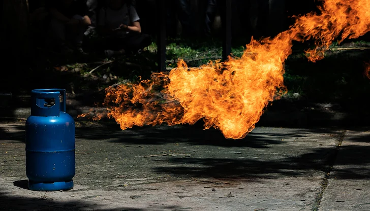 Запалена газова бутилка вдигна на крак пожарната в Русе