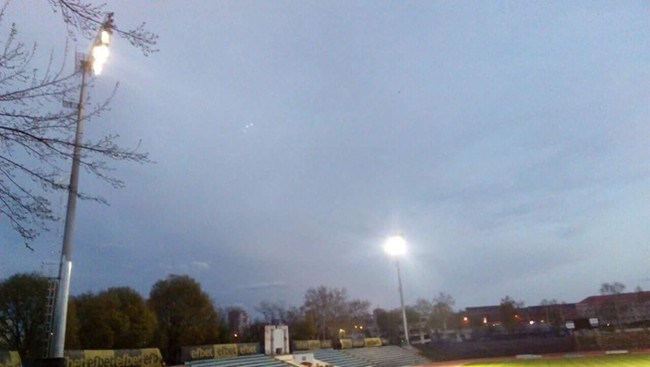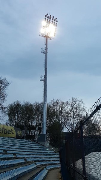 Във вторник вечерта, последователно светнаха част от прожекторите на първите два стълба от осветлението на Градския стадион в Русе.