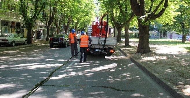 От днес служители на ОП „Комунални дейности“ работят с нова машина за запълване на пътни пукнатини и запечатване на фуги с битумна паста, която е полимерно-модифицирана.