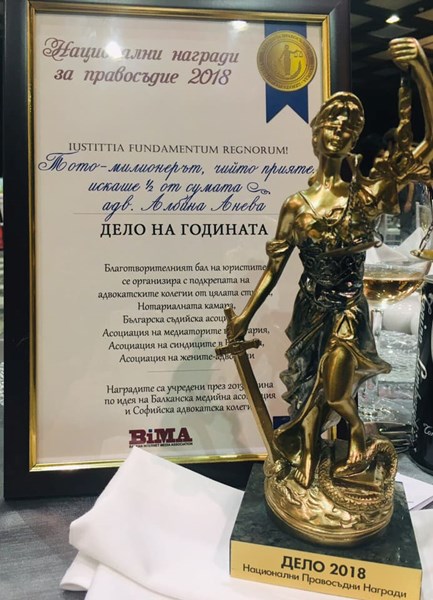 Първи по рода си казус в съдебната практика на страната, свързан с тотомилионер, донесе най-престижната награда “Дело на годината” и статуетка на Темида на благоевградската адвокатка Албина Анева.