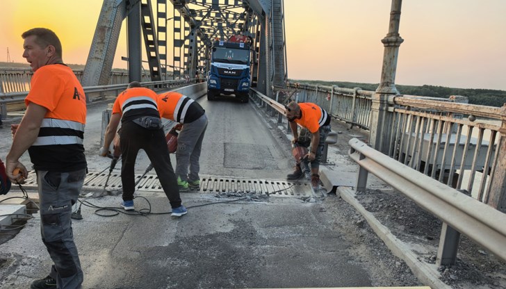 След затварянето на съоръжението в 20:00 часа тази вечер започна и преасфалтирането на няколко проблемни участъка преди моста и по самото съоръжение, предаде кореспондентът на Dunavmost.com. Въпреки спрения трафик, на входа на моста в момента дежурят екипи на Областната дирекция на МВР и Регионална дирекция "Гранична полиция", които следят за спазване на ограниченията.