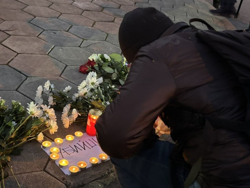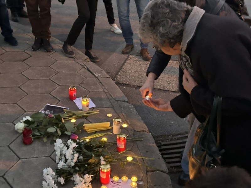 Хората мълчаливо палят свещи и оставят цветя