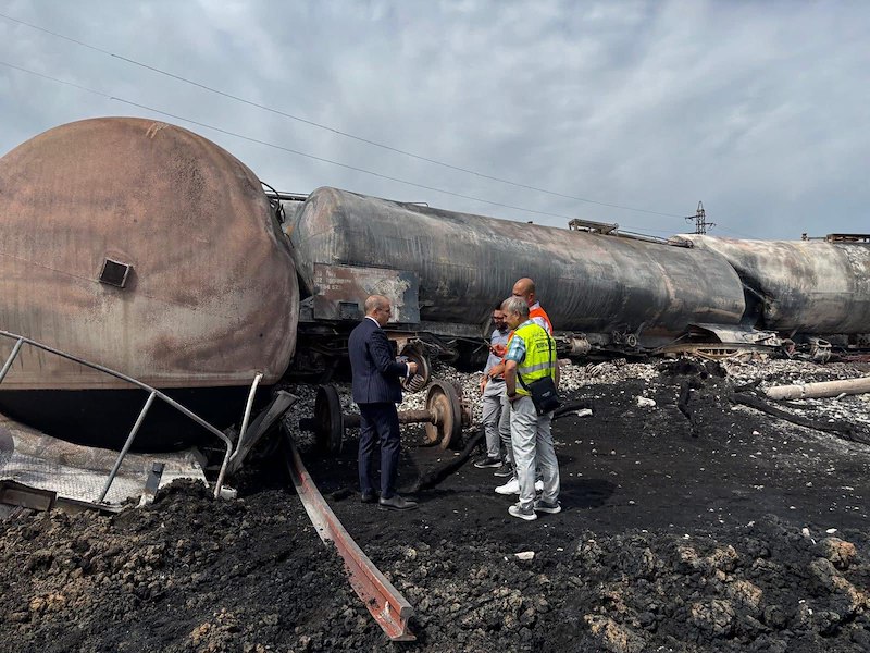 Инцидентът се случи рано тази сутрин около 05:00 часа, когато 13 от 34-те вагона на товарната композиция дерайлираха. Осем цистерни с дизелово гориво се запалиха, но пожарът беше овладян без човешки жертви.