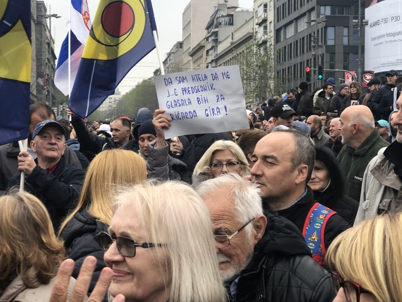 На митинга се стекоха граждани от цяла Сърбия. Вече има пристигнали от Крагуевац, Крушевач, Петровац, Нови сад и Сремска Митровица. Те скандират „Вучич крадец“ и носят букви, с които изписват думата „Оставка“.