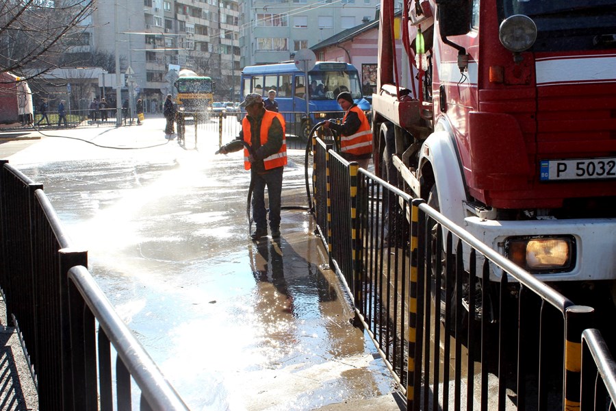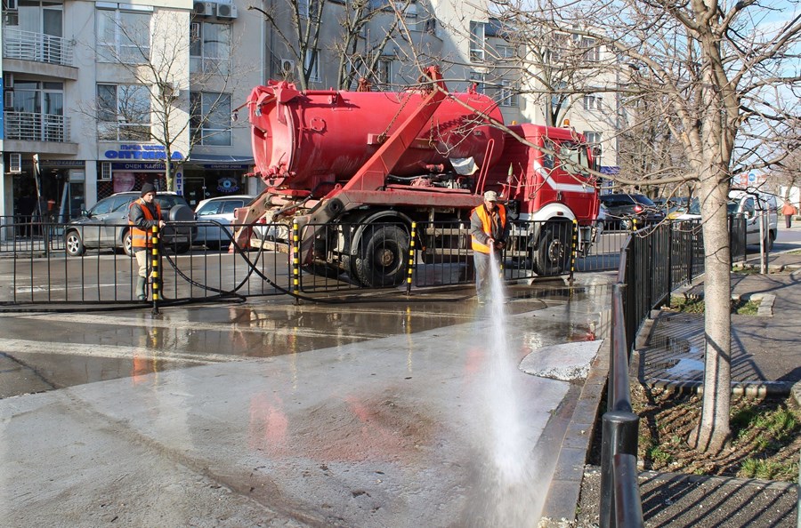 В първите дни от почистването е включен района около Паметника на Альоша. Миенето ще продължи към бул. „Съединение“, бул. „Цар Освободител“ и централната градска част.