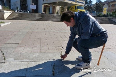Зелени храстчета, "поникнали" във фугигте на разлепените плочки, привлякоха вниманието на минаващи през централния градски площад русенци, пише Русе нюз.