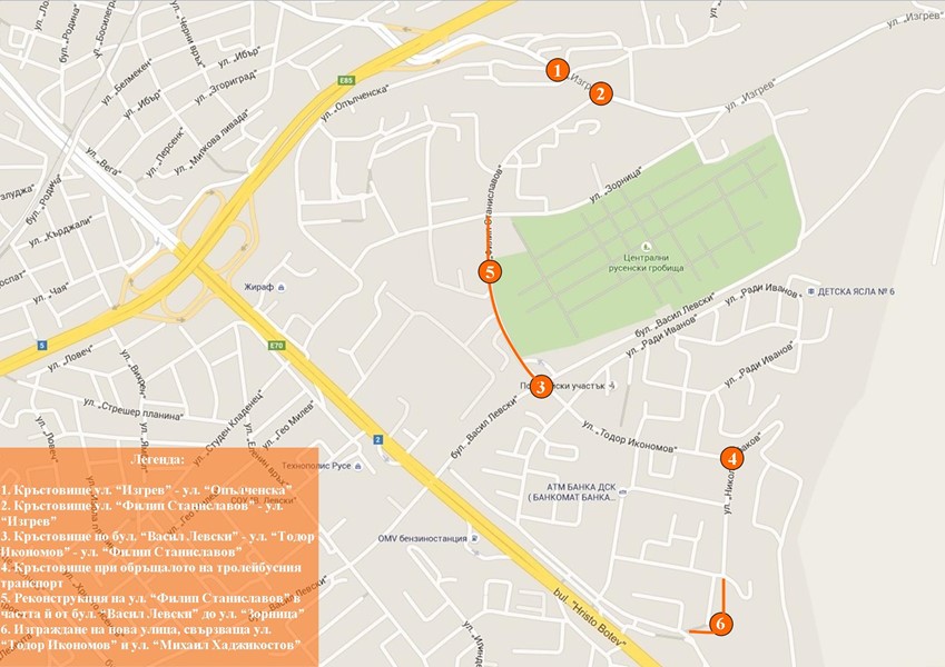 В следващите три месеца предстои реконструкция на улица „Филип Станиславов” – в частта й от бул. „Васил Левски” до ул. „Зорница”. Ще се извърши разширяване на улицата и изграждането на нов тротоар от страната на гробищния парк. Предвидено е и място за велоалея.