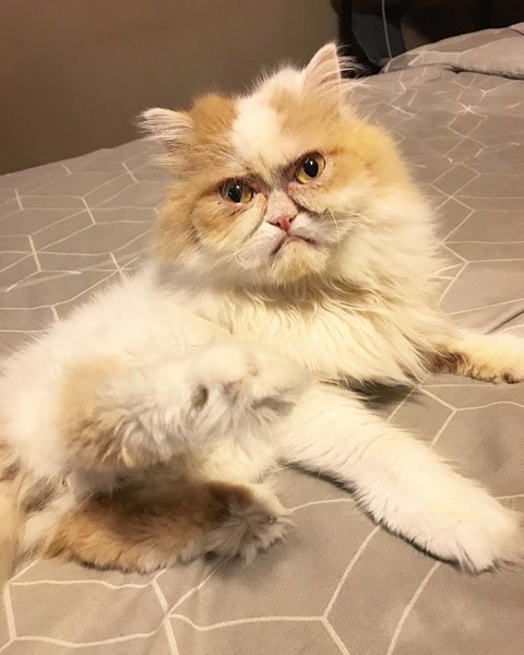 За щастие Луис няма генетично заболяване. Той е чистокръвен персиец и това е естественото му изражение. Макар и да прилича на намусен старец, е много дружелюбен и игрив, твърди стопанката му Мишел Алексис. Той е на шест години и много обича да се гушка.