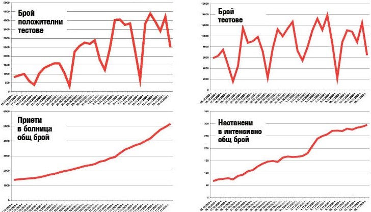 Заразата с COVID-19 в България вече е като голям пожар, който трудно може да бъде загасен за кратко време. Вирусът е станал по-агресивен от пролетта, а студът през зимните месеци спомага за разпространението му. Това са част от заключенията на експертите, които Труд потърси за коментар на графики от числата с дневната статистика по 6 показателя за периода от 15 октомври до 15 ноември т. г.