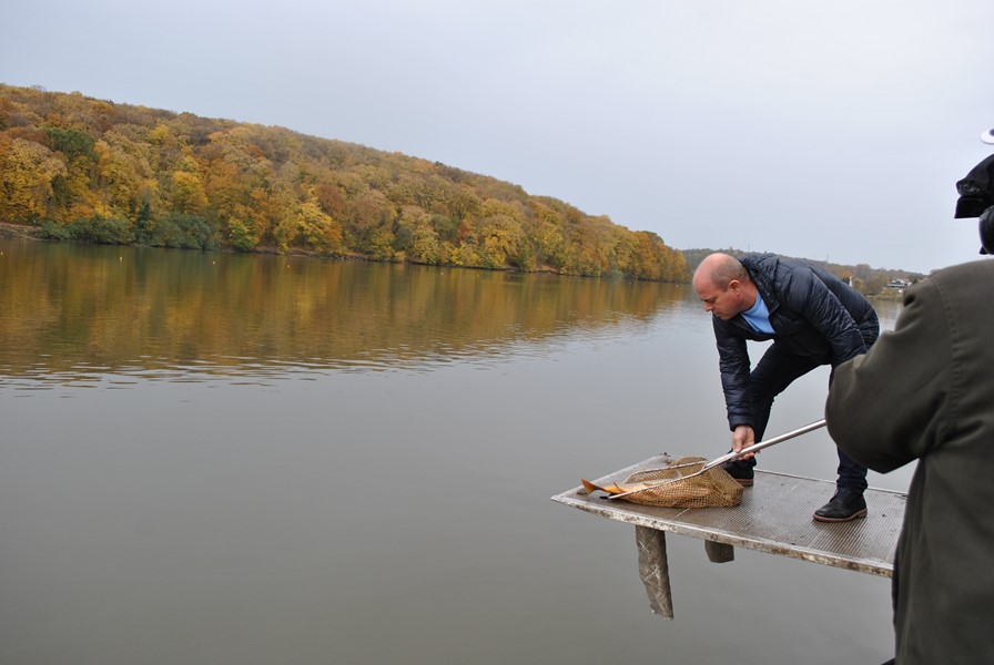 Кметът Пламен Стоилов пусна първите едри шарани в езерото в Лесопарк „Липник“ днес.