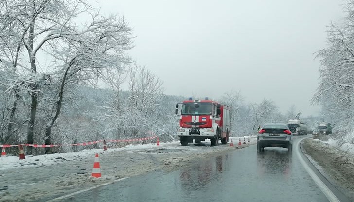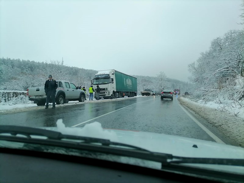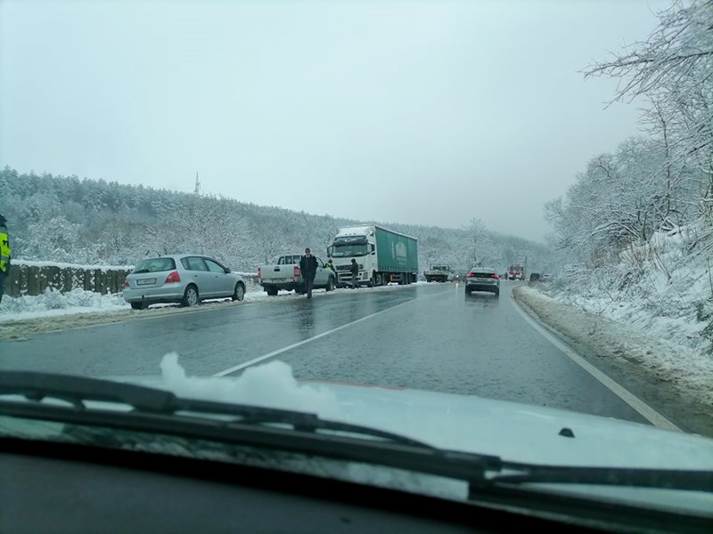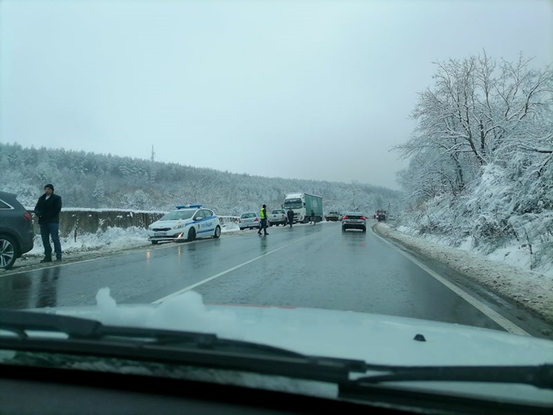 Задръстване има и непосредствено до Полски Тръмбеш, сигнализират потърпевши. Според тях пътната настилка е напълно заледена.